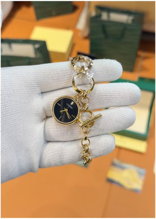 Timeless ladies watch with a unique chain bracelet and refined round dial.