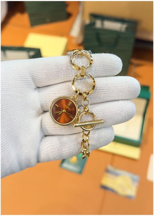 Timeless ladies watch with a unique chain bracelet and refined round dial.